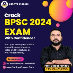 If you’re preparing for the BPSC exam, then you can also enroll in BPSC coaching classes. Sahitya Classes provides the best BPSC coaching online through its comprehensive Google Drive Course. After enrolling in the course, you will get best BPSC Study Material along with personalized guidance from Prof. Vineet Pandey. The journey may be tough, but with the right preparation strategy, a solid understanding of the BPSC exam pattern, and access to the best BPSC study material, you can clear this exam and embark on a rewarding career. For better understanding of the BPSC syllabus and course content, join Sahitya Classes now!